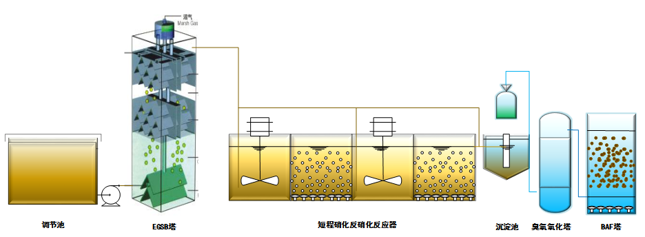 1)采用高效EGSB厭氧工藝,COD去除率達80%以上;