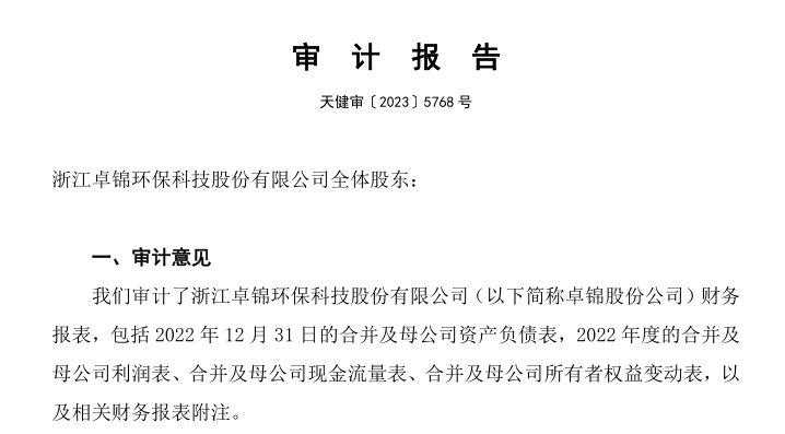 浙江卓錦環保科技股份有限公司2022年度審計報告