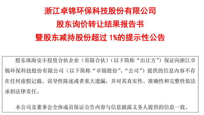 股東詢價轉讓結果報告書暨股東減持股份超過1%的提示性公告