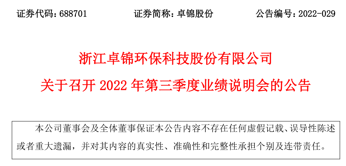附件:浙江卓錦環(huán)??萍脊煞萦邢薰娟P(guān)于召開2022年第三季度業(yè)績(jī)說明會(huì)的公告