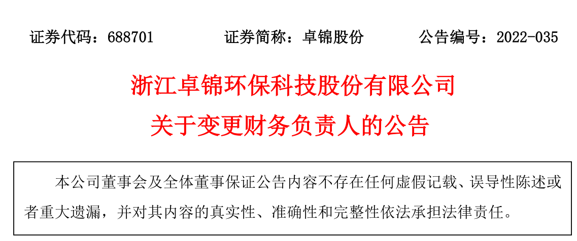 關于變更財務負責人的公告