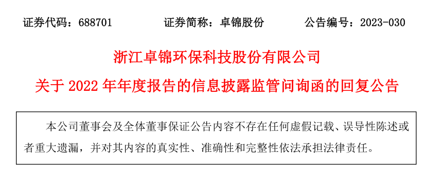 關于2022年年度報告的信息披露監管問詢函的回復公告