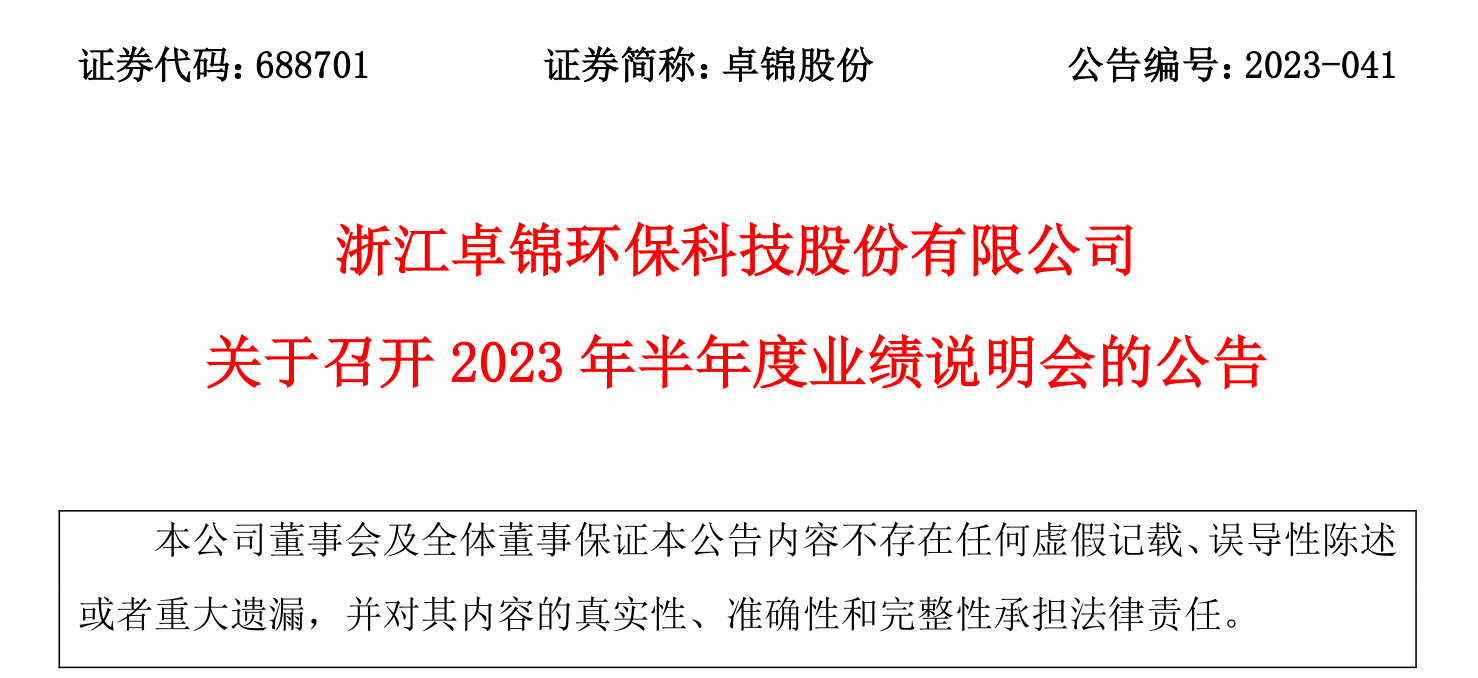 浙江卓錦環保科技股份有限公司關于召開2023年半年度業績說明會的公告