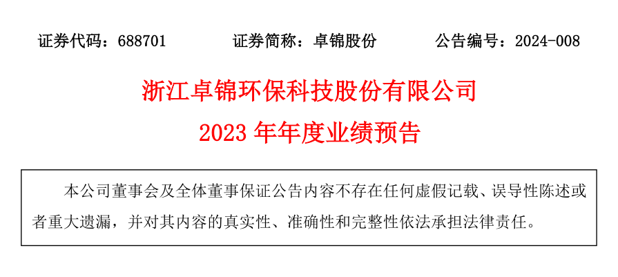 附件:浙江卓錦環(huán)保科技股份有限公司2023年年度業(yè)績(jī)預(yù)告