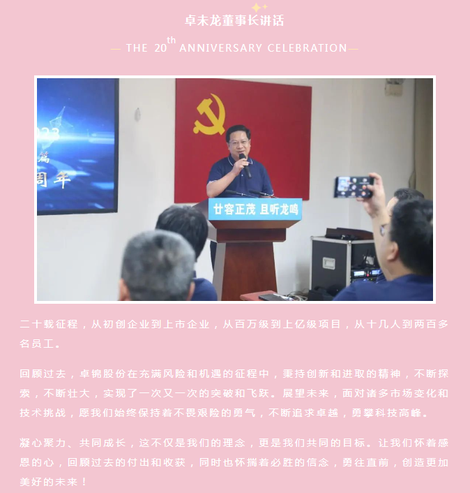 砥礪奮進(jìn)二十載 凝心聚力開新篇 丨慶祝卓錦股份成立20周年