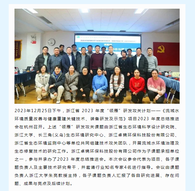 浙江省 2023 年度“領雁”研發攻關計劃——《流域水環境質量改善與健康重建關鍵技術、裝備研發及示范》項目年度總結推進會順利召開