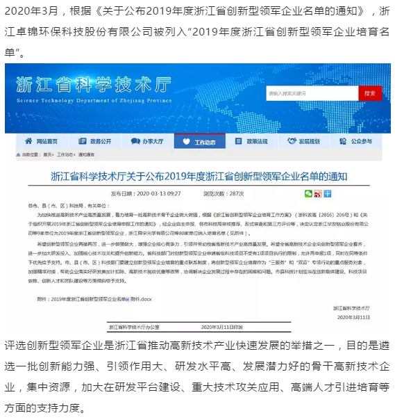 以科技促發展、以創新贏未來——卓錦環保獲得多項科技殊榮
