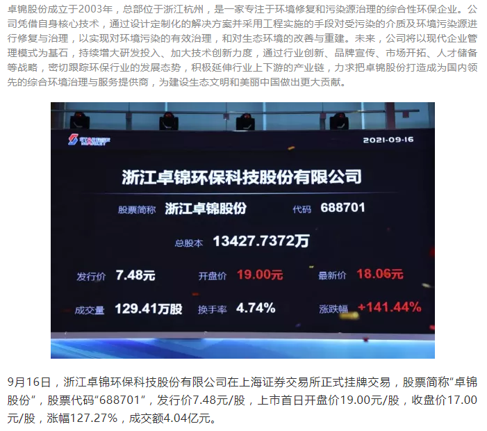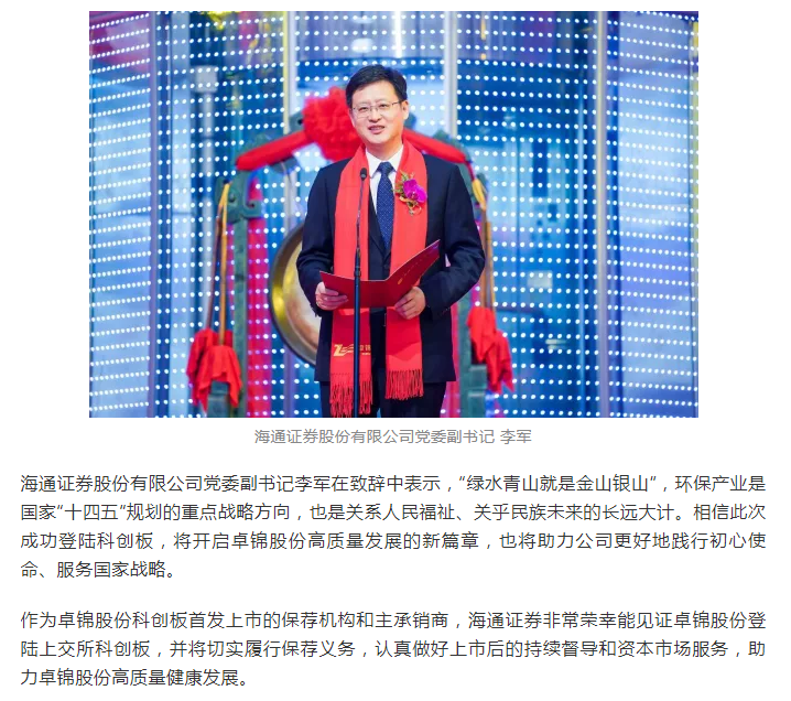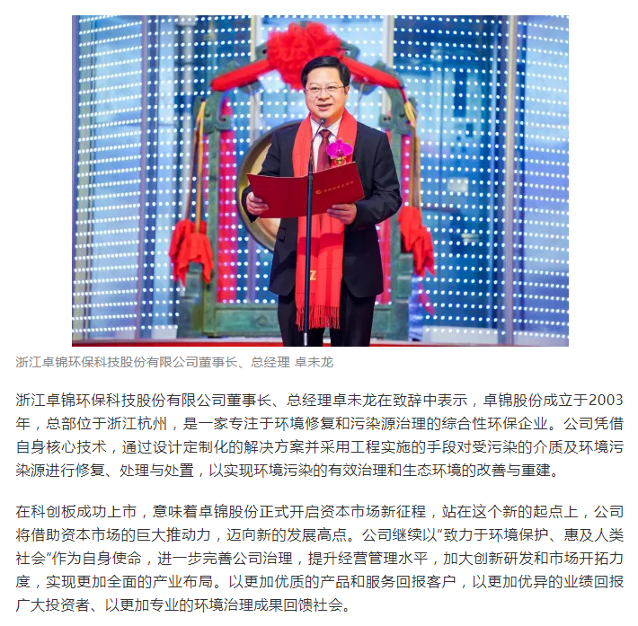 致力于環境保護、惠及人類社會,卓錦股份成功登陸上交所科創板