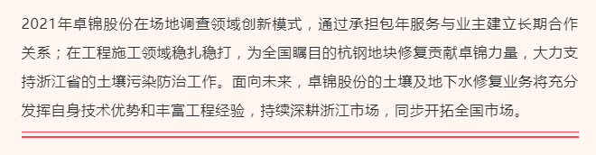 高度認可|卓錦股份獲評2021年浙江省污染地塊調查評估和治理修復從業單位“方案編制類”和“工程施工類”優秀企業