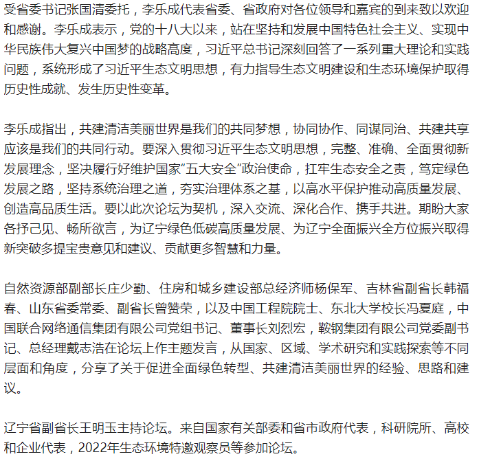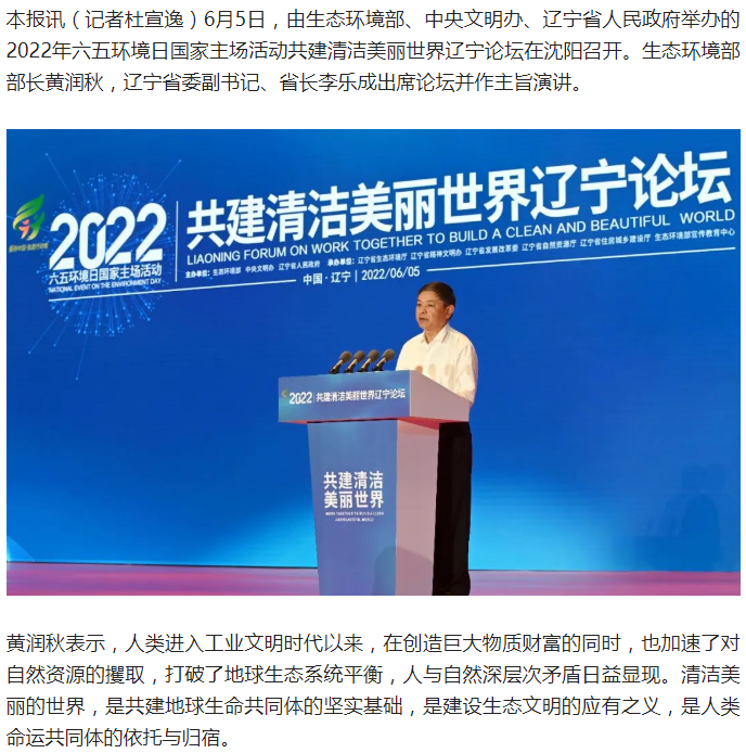 共建清潔美麗世界遼寧論壇在沈陽舉辦