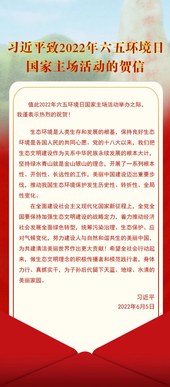 2022年六五環(huán)境日國(guó)家主場(chǎng)活動(dòng)5日在遼寧省沈陽(yáng)市舉行。中共中央總書記、國(guó)家主席、中央軍委主席習(xí)近平發(fā)來賀信,向活動(dòng)的舉辦表示熱烈的祝賀。